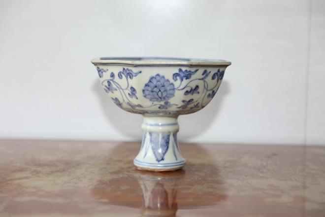 作者:306 青花花卉八棱高足碗