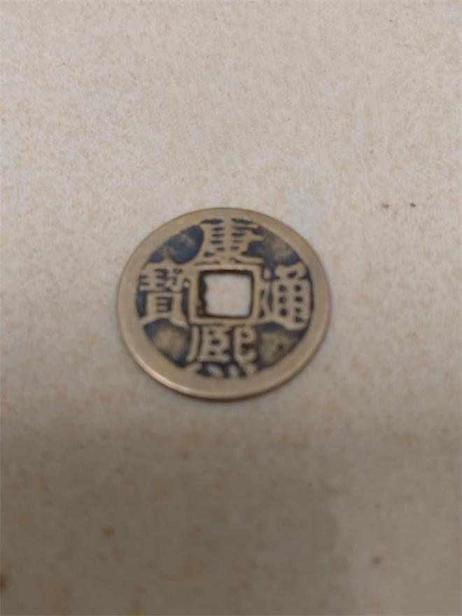 这是一枚康熙通宝,是清朝康熙年间(1662-1722年)铸造的流通货币。