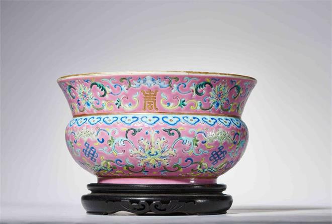 作者:631 清道光 胭脂地粉彩西番莲纹花囊