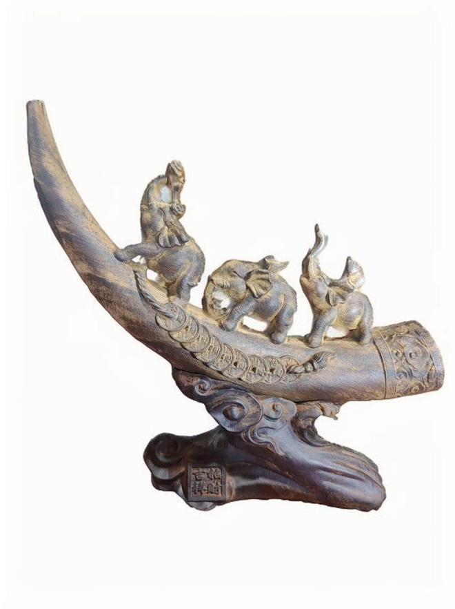 495g奇楠香摆件以‌奇楠香‌为原料,质地致密、纹理清晰,表面雕刻有‌大象、象牙及莲花‌等吉祥元素,造型生动,寓意“平安富贵”“吉祥如意”。