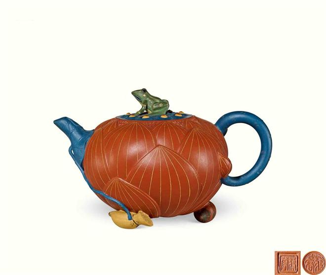 作者:743 当代 蒋蓉制莲花青蛙壶
